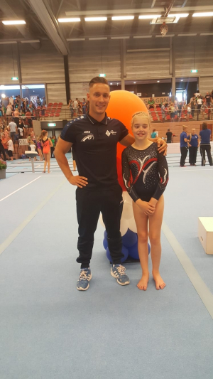 Megan had zich knap geplaatst voor de NK finale die voor haar klasse Pupil 2 N3 afgelopen zondag plaatsvond in Waalwijk. Een dag tevoren was ze al afgereisd om uitgerust aan de wedstrijd te beginnen. Ondanks steun van supporter Julia begon ze met een wit gezichtje zenuwachtig op vloer met een nette oefening. Op sprong ging het goed, vooral de tweede sprong, en ze turnde fantastisch op brug. Gelukkig ging ook de gevreesde balk goed en hield ze haar zenuwen in bedwang. Van de 36 deelneemsters werd Megan 21e.