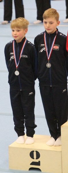 Kyan Jacobs en Cas Klein turnen pupillen niveau 14. Kyan turnde een nette brug oefening waarmee hij de hoogste score van alle deelnemers behaalde en ook op rek ging het goed. Op vloer en voltige had Kyan zich sterk verbeterd, maar ringen mislukte totaal. Vervolgens liet hij op sprong nog een mooie schroefsalto en overslag zien, waardoor hij op een verdiende 2e plaats eindigde.
