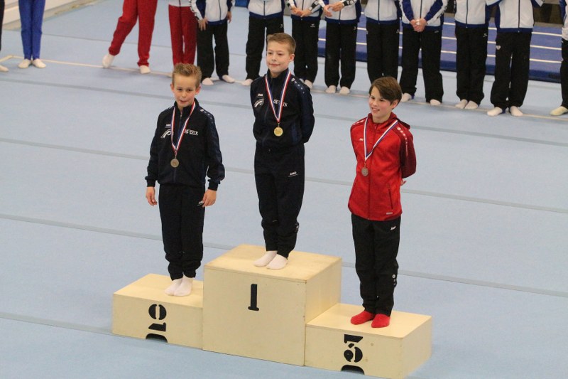 Rick turnde heel goed! Vloer, niet zijn sterkste toestel, maar met een mooie salto was zijn vloer voldoende. Op het moeilijke toestel voltige scoorde hij een van de hoogste punten. Bij sprong was de streksalto flinke misstap uitgevoerd, maar dit maakte hij weer goed in zijn tweede sprong. Bij ringen heeft hij zich flink verbeterd en op het onderdeel brug pakte Rick de hoogste score. Rek werd ook netjes uitgevoerd, waardoor hij een super mooie 2e plaats behaalde! Joritz turnde ook een stabiele wedstrijd en werd 8e.